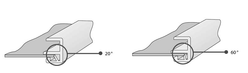 Gleitabschluss-Profilbreiten: 180, 195, 210, 225, 240, 260, 280, 300, 320, 340 und 360 mm